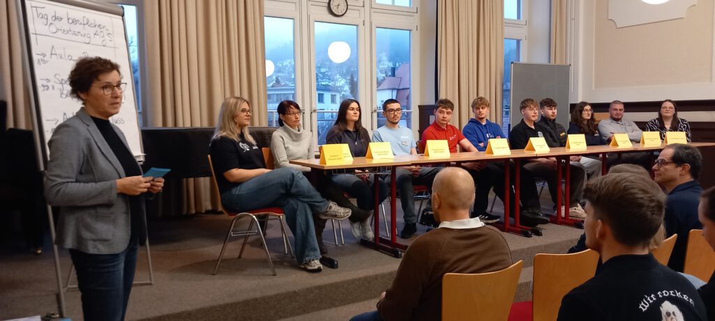 Gerade die Auszubildenden der Bildungspartner Ernst Umformtechnik, Koehler Papergroup, Erdrich Umformtechnik, Sozialstation St. Elisabeth, Ruch NOVAPLAST, DOLL Fahrzeugbau, Pflegedienst Schwesternverband, EDEKA Decker´s Frischecenter, Hollnberger Fensterbau und Stadtwerke Oberkirch spielen eine große Rolle bei dieser Begegnung, da ihre eigene Schulzeit, die einige von ihnen an der Werkrealschule verbracht haben, noch nicht so lange zurückliegt und sie lebensnah über ihre Erfahrungen berichten können, die sie auf ihrem Weg hin zum passenden Beruf gesammelt haben. Besonders deutlich wir dabei immer wieder, welche Bedeutung dem Absolvieren von Praktika beigemessen werden muss. Interesse zeigen, viele verschiedene Richtungen gehen, Sachen ausprobieren – das kann helfen, das zu finden, was zur Persönlichkeit, zu den Fähigkeiten und Interessen passt, auch weil man eventuell feststellen kann, was man nicht möchte.